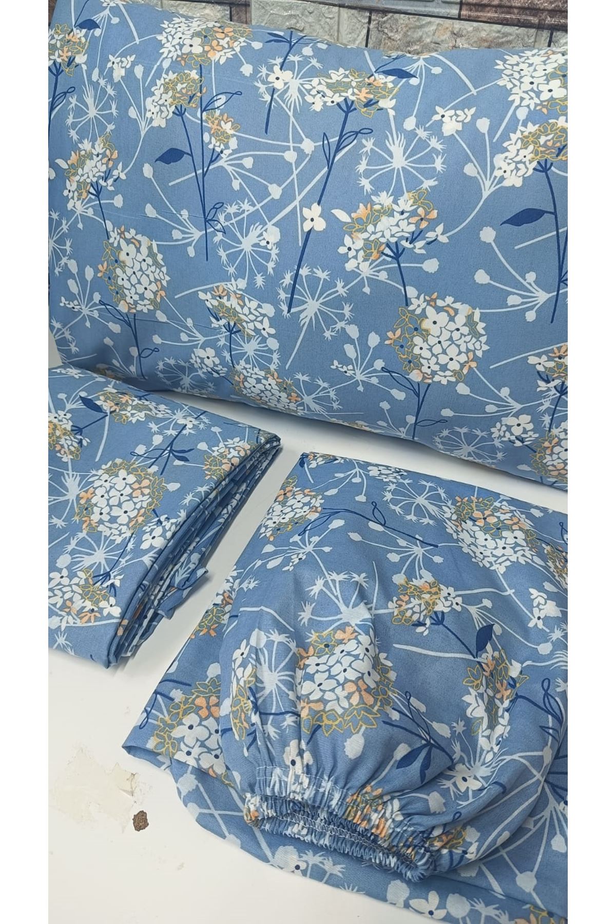 ÇİFT KİŞİLİK ÇARŞAFI LASTİKLİ PAMUKLU RANFORCE KUMAŞ NEVRESİM TAKIMI Mavi