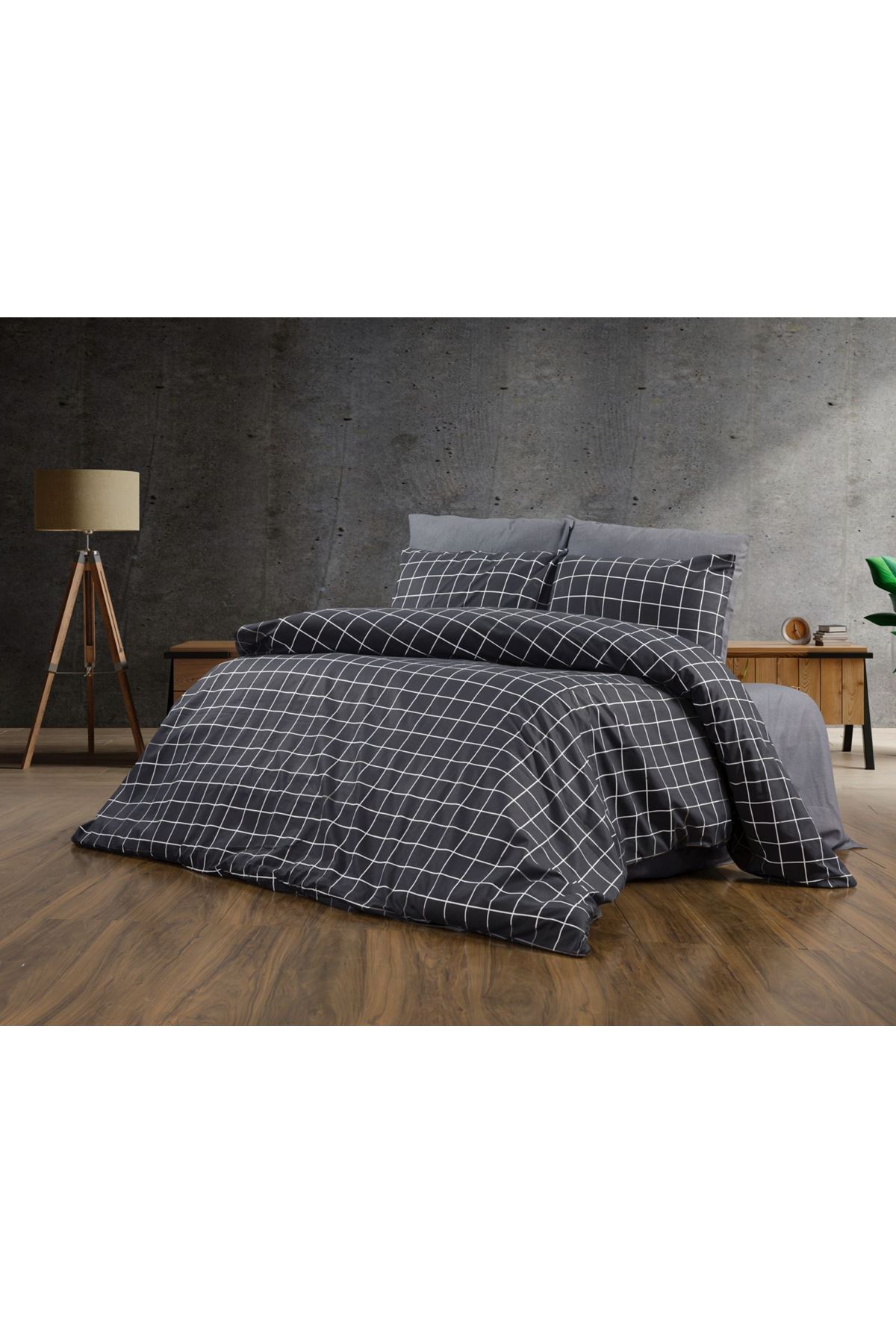ÇİFT KİŞİLİK PAMUKLU EKOSE KARELİ NEVRESİM TAKIMI ( ÇARŞAF LASTİKLİ ) Siyah