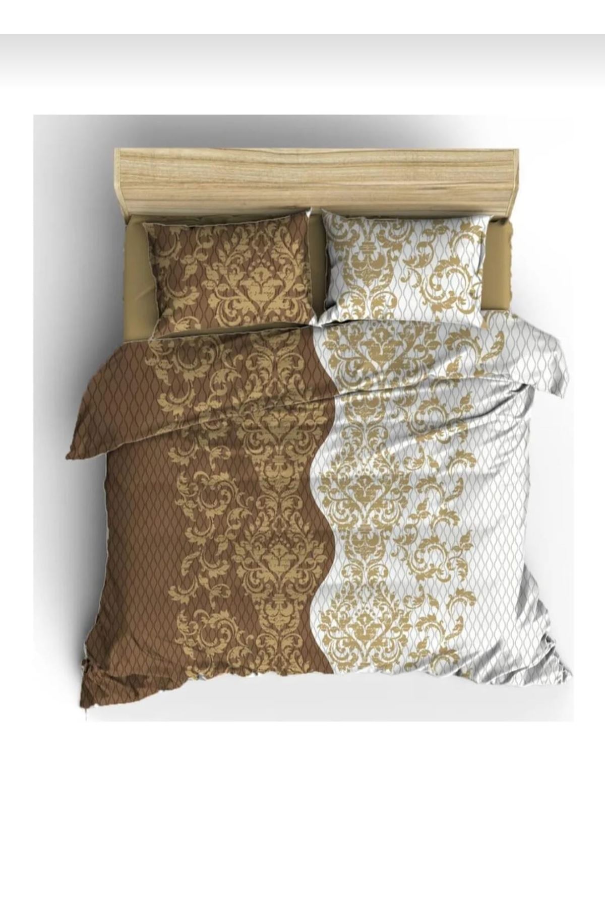 ÇİFT KİŞİLİK PAMUKLU RANFORCE KUMAŞ NEVRESİM TAKIMI ( ÇARŞAFI LASTİKLİ ) KAHVE YOLLU
