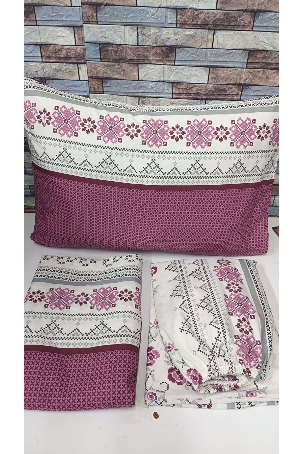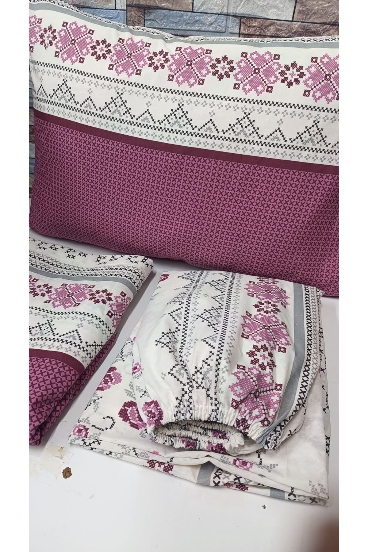 Çift Kişilik Kanaviçe Desen Pamuklu Nevresim Takımı ( Çarşafı Lastikli ) Gülkurusu