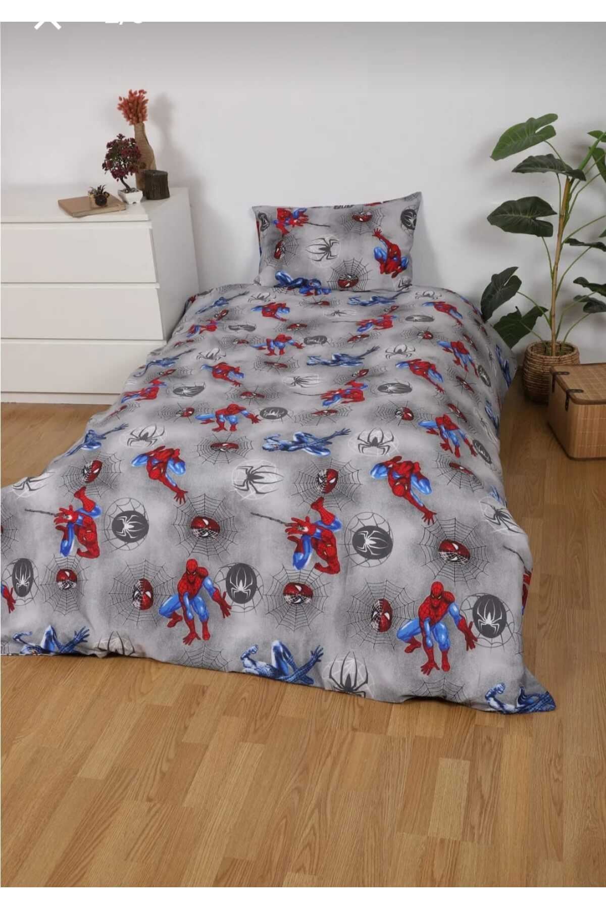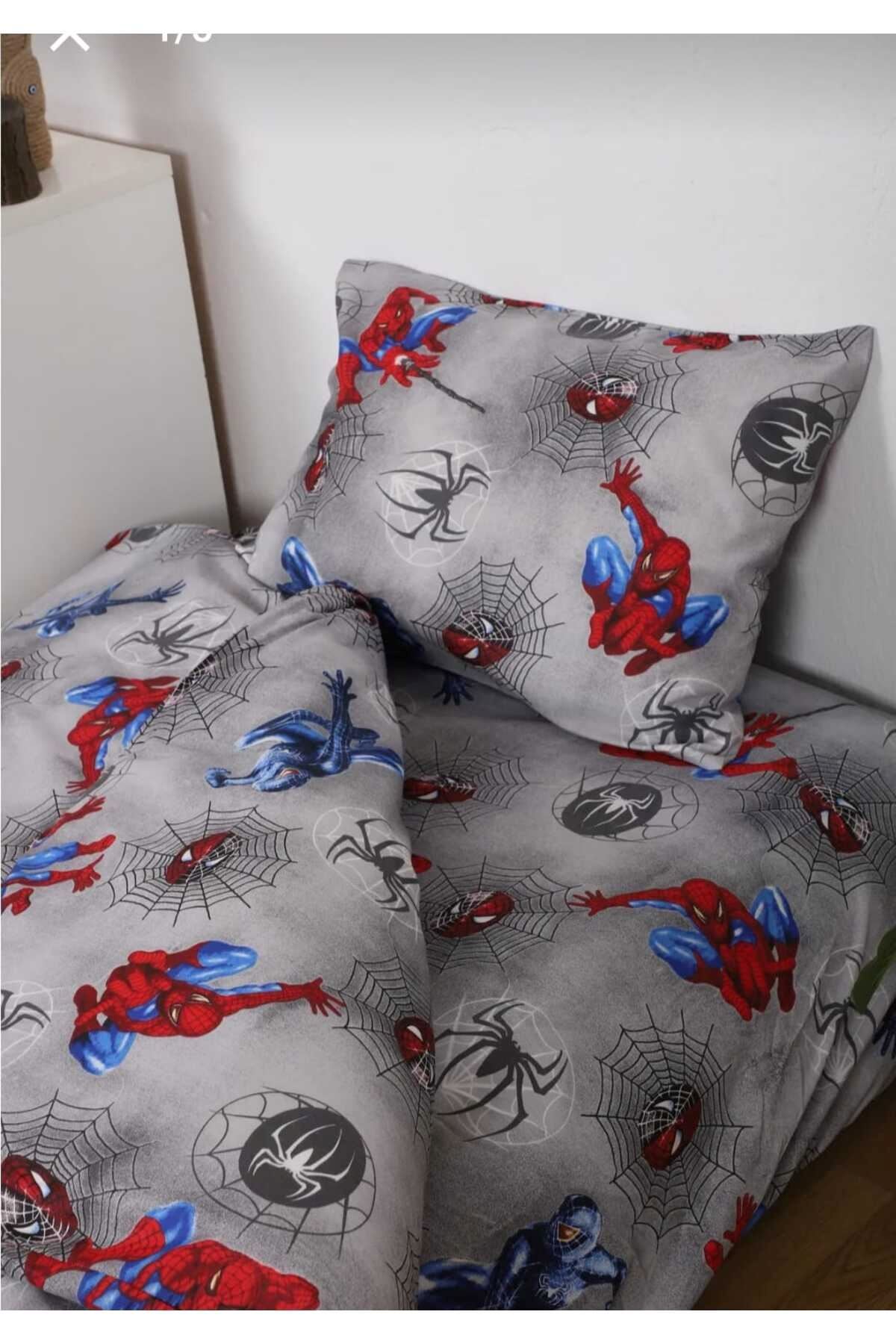 Örümcek Adam temalı çizgi kahraman desenleriyle çocukların ve gençlerin odalarına neşe katan tek kişilik nevresim; Yüksek kaliteli pamuk ve polyester karışımı materyal, yumuşak dokusuyla konforlu bir uyku deneyimi sunar; Lastikli tasarımı sayesinde çarşafın yatağa mükemmel uyum sağlaması ve kaymasını önleyerek pratik kullanım imkanı sağlar; Kırışmaya dayanıklı özelliği ile sık yıkamalara karşı dayanıklılık gösterir, uzun süre ilk günkü gibi kalır; ; Nevresim 160x220cm ; Lastikli Çarşaf 100x200 cm ; Yastık Kılıfı 50x70 cm;