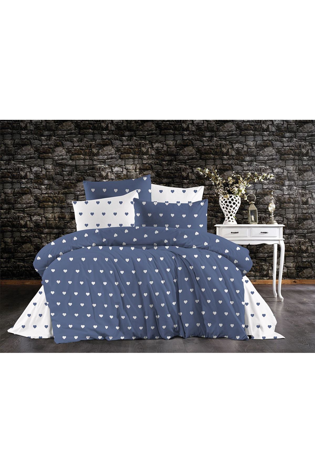 PAMUKLU KALP DESEN TEK KİŞİLİK NEVRESİM TAKIMI (ÇARŞAFI LASTİKLİ) MAVİ
