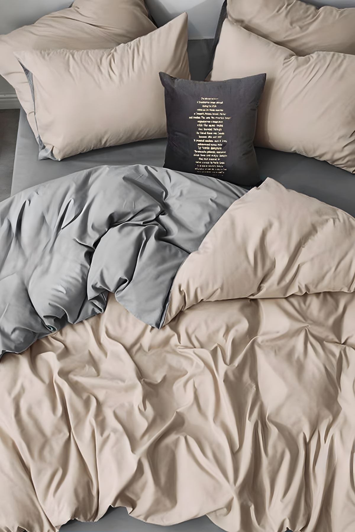Ranforce Çift Kişilik Lastikli Çarşaflı Nevresim Takımı Bej gri