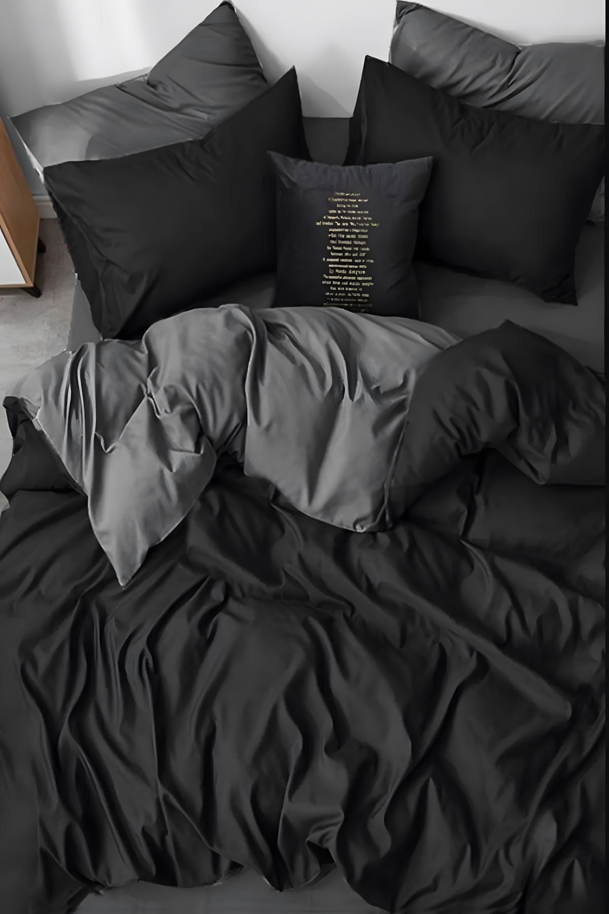 Ranforce Çift Kişilik Lastikli Çarşaflı Nevresim Takımı Siyah-gri