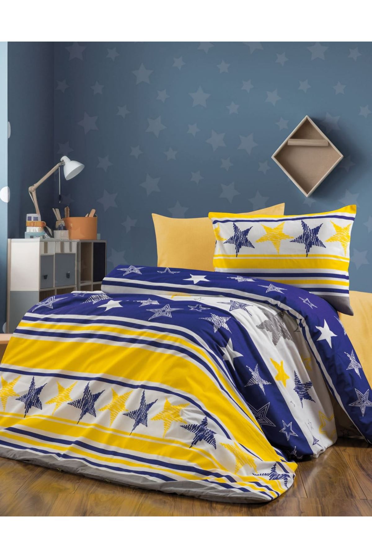 Sarı Lacivert Taraftar Tek Kişilik Nevresim Takımı ( Çarşaf Lastikli ) Sarı Lacivert