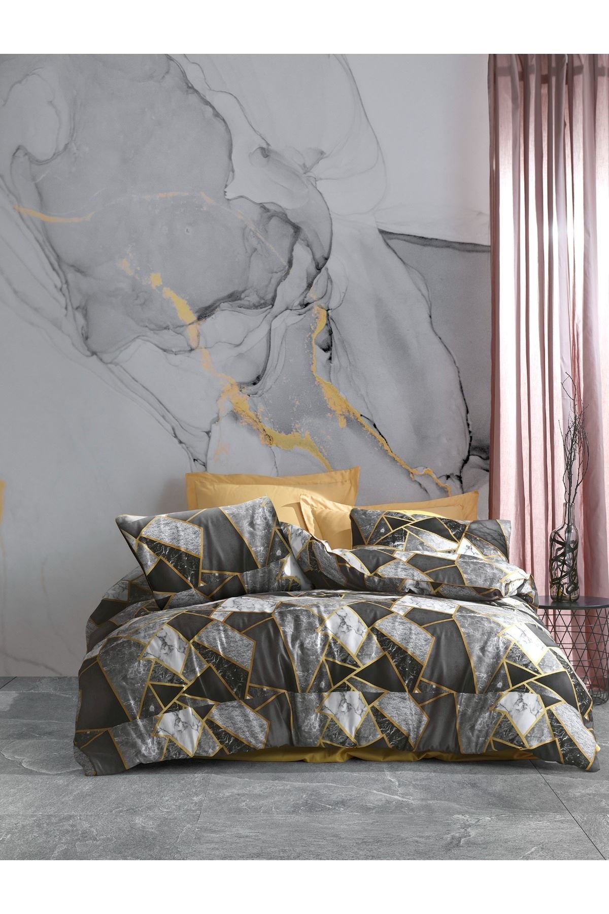 Tek Kişilik Ranforce Kumaş Nevresim Takımı ( Çarşafı Lastikli ) GRİ